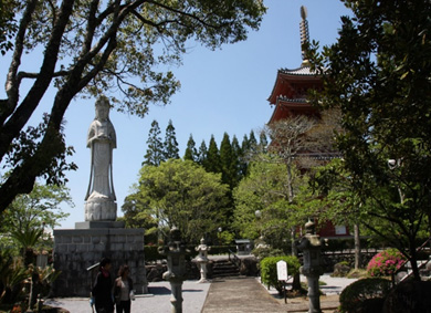 糸永貞樹は、東京で事業を成功させた後に故郷に戻り、お世話になった人々への感謝の気持ちを表すため、平安・鎌倉時代に栄えて江戸時代末期に火事で消失した天台宗大建寺の敷地を整備し、1983年に京都伏見の醍醐寺五重塔を模した九州初の五重塔を建立しました。高さ約28メートルの木造建築物で、初層の間は総金箔押しの仏間、御本尊は大日如来です。更に、持仏堂(糸永家の先祖が燃え盛る炎の中から持ち出した数体の木造仏像が祀られている)、山門(欅の一本彫りの仁王像が左右に安置されている)を建立し、鐘楼及び大梵鐘(平和の鐘)も設置しました。